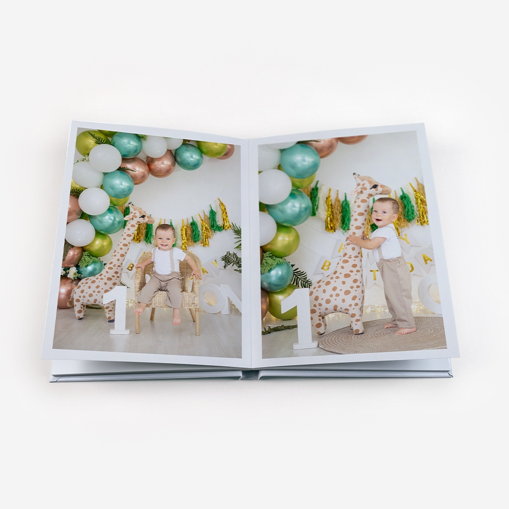 Os Álbuns de Fotos Dreambooks apresentam uma abertura panorâmica, com a possibilidade de colocar uma foto em destaque ocupando duas páginas. Desta forma, desfrutarás de uma visualização perfeita das tuas fotos, sem cortes ou partes escondidas.