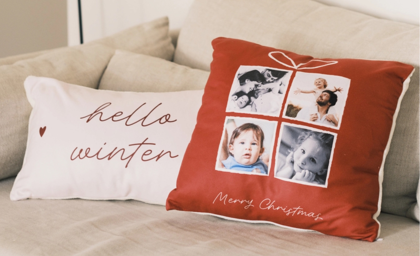 Podes adicionar almofadas de Natal, mantas fofas e quentes, e até molduras com fotos de Natais anteriores. As velas também são ótimas para criar um ambiente aconchegante e acolhedor.