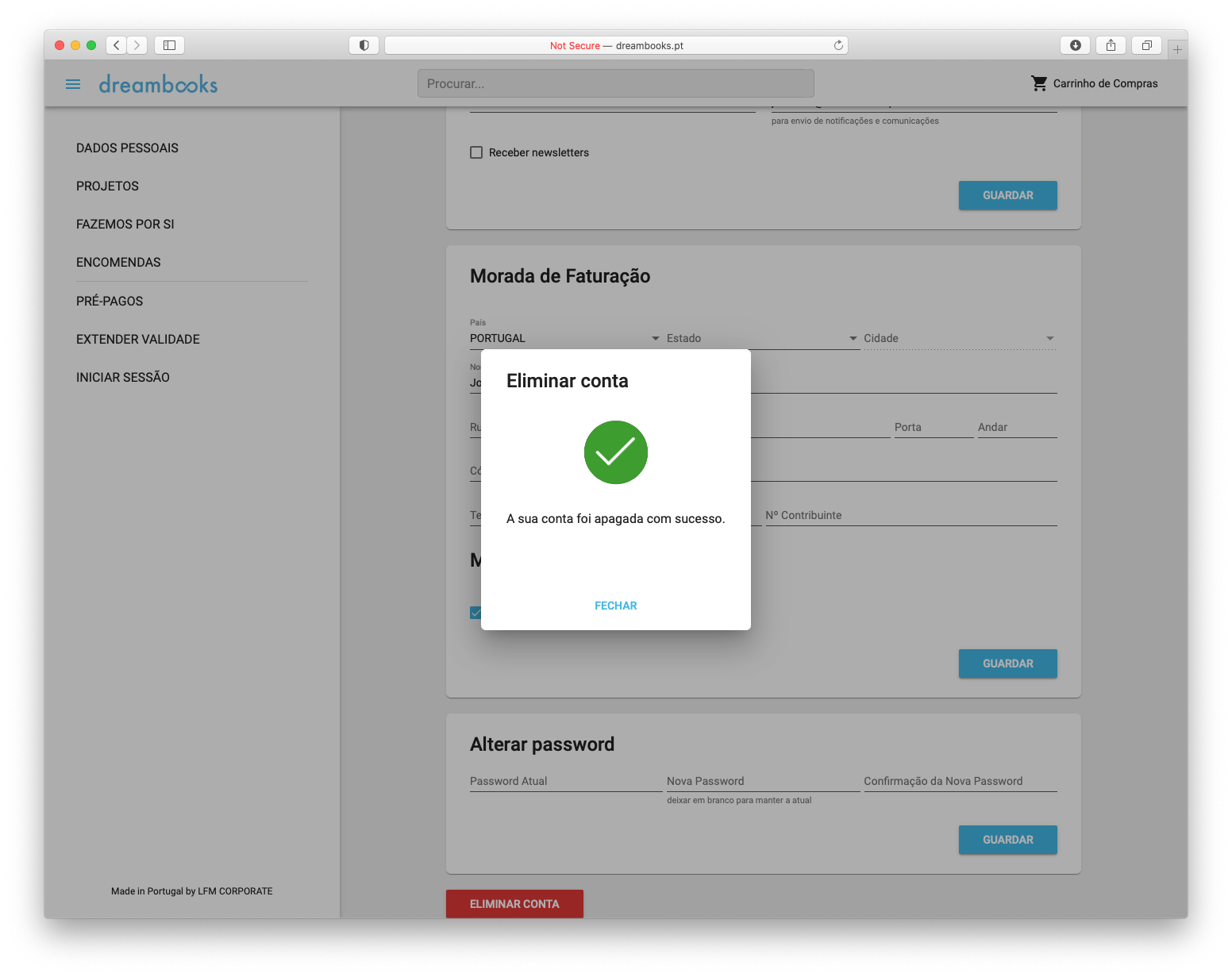 2.8. Quando o serviço de conta utilizador é extinto, a Dreambooks suprime a conta, assim como, todas as fotografias e projetos que nela estejam arquivados.